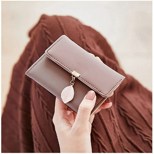 Small Wallet for Women PU Leather RFID Blocking Coin Purse Card Holder Trifold Ladies Purse Leaf Pendant(Pale Purple)
