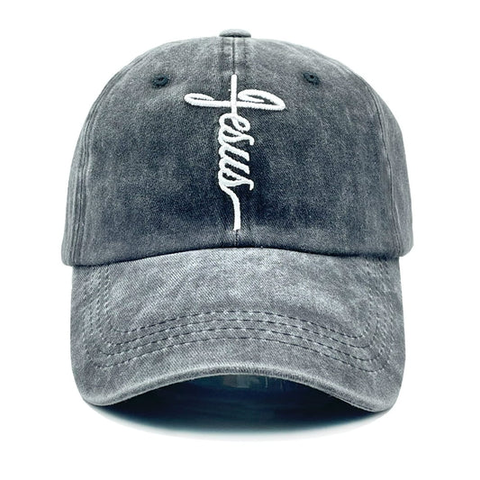 Embroidered Christian Jesus Cross Hat for Men Women, Vintage Washed Dad Hats Adjustable Baseball Cap