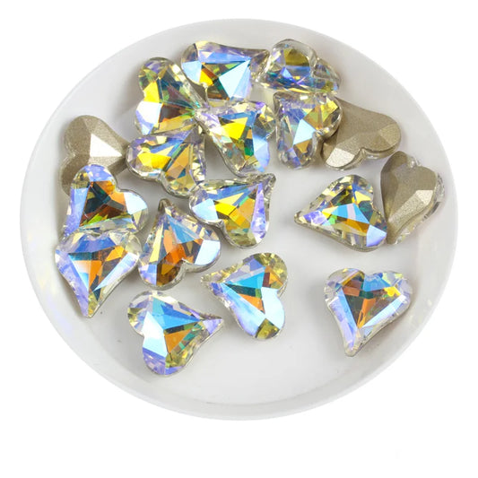 12X13Mm Big Crooked Heart Nail Art Rhinestone Pointed Bottom Crystal Stones for Nail Decoration