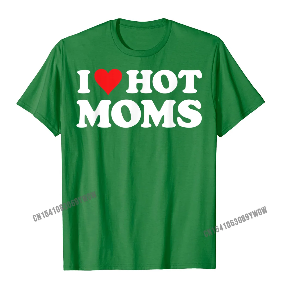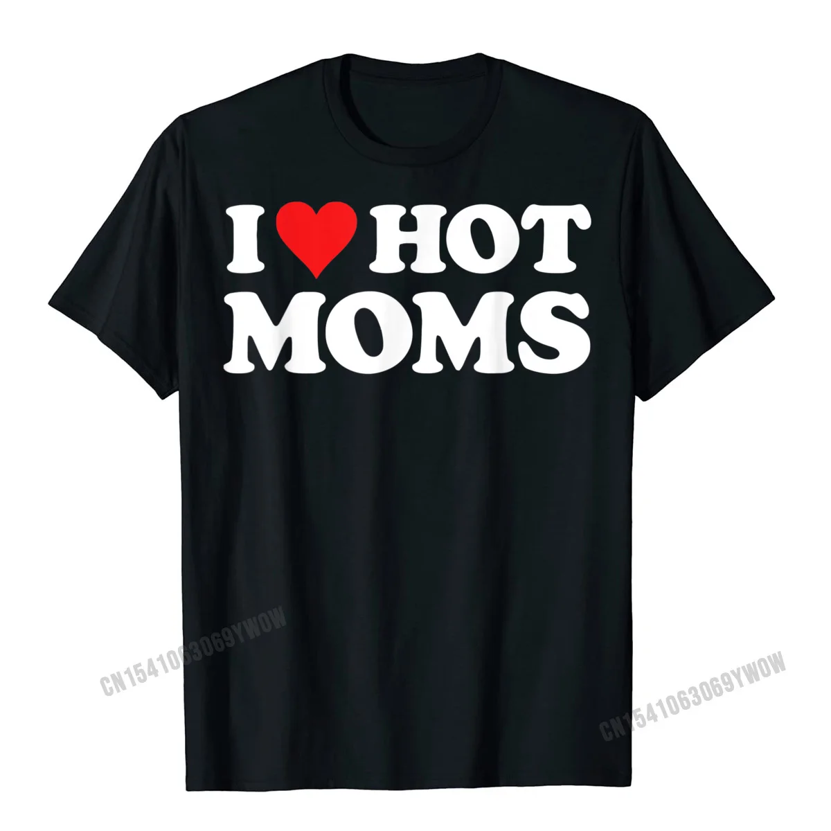 I Love Hot Moms Tshirt Funny Red Heart Love Moms T-Shirt Men Casualprinted T Shirt Cotton Mens Top T-Shirts